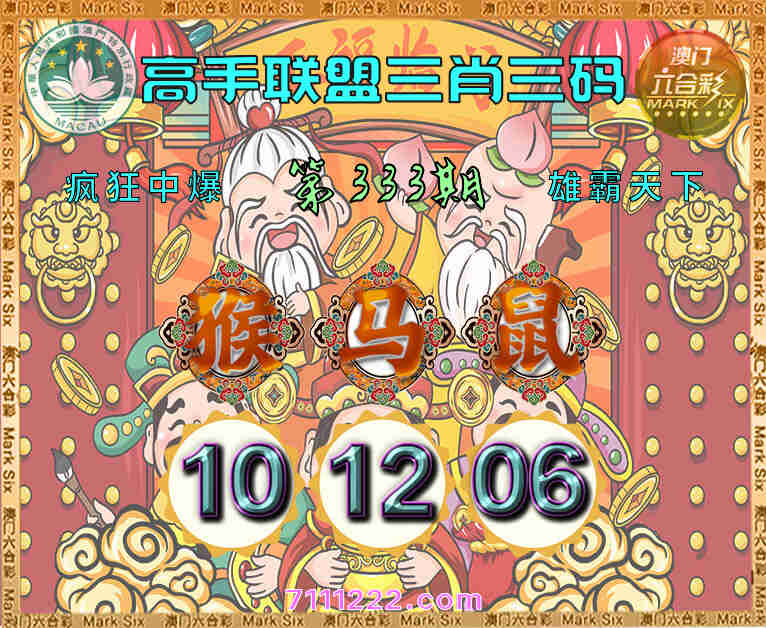 333期:【高手联盟】 🌲三肖三码🌲【猴马】【10.12.06】开:鼠06